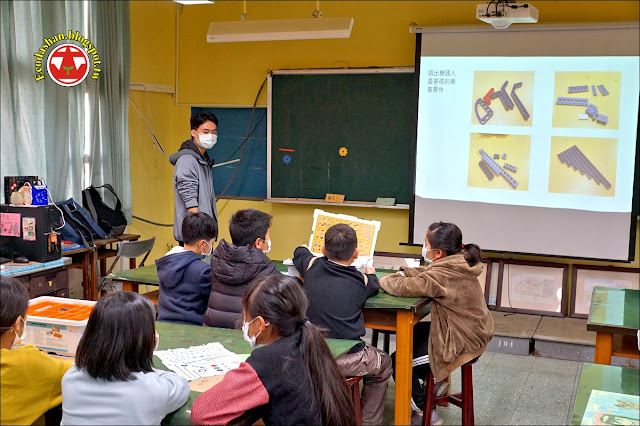 大山國小辦理機器人冬令營,110年2月1日~2日期間為樂高NXT積木課程,兩位老師(高中青年)指導學童認識積木構件,並應用簡單機械原理、工程學概念組裝了橡皮筋槍,接著再把橡皮筋槍架連結NXT程式控制器,成為一台可以自走的橡皮筋槍戰車,饒富趣味!
